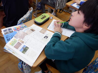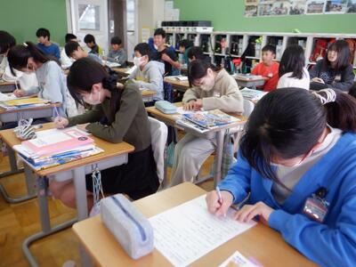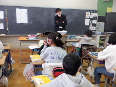 4年生の国語では、「調べて話そう、生活調査隊」の学習を進めています。 電子黒板を使って発表するため、 担任の先生からは、