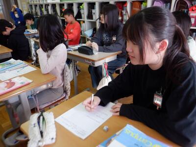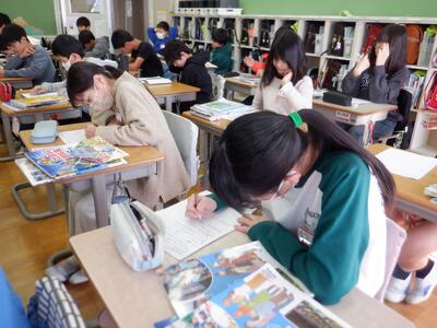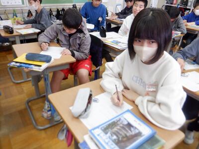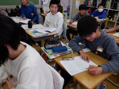 | 6年生の社会では、「6年生 社会科を振り返って」の学習を行いました。 今日はプリントを使って、この一年間に学んだことをじっくりと思い返しながらまとめました。 「社会科の授業で面白かったこと・印象に残ったこと」という問いには、 本能寺の変の場面を挙げる子がいて、歴史の出来事をしっかりと自分の言葉で振り返っている様子が伝わってきました。 学んだ内容をただ覚えるだけでなく、心に残った場面として語れることに、6年生らしい深まりを感じます。 プリントには、一人ひとりが丁寧に書き込んだ学びの足跡が並び、 この一年の社会科がとても内容の濃い、充実した時間だったことがよくわかりました。 自分の学びを見つめ直し、言葉にしてまとめる姿は、とても頼もしく、卒業を前にした成長を感じさせてくれます。 |