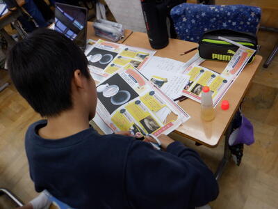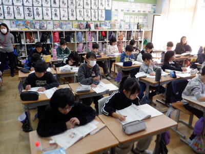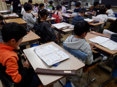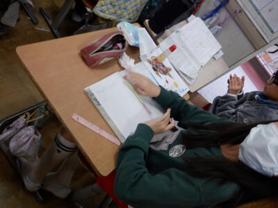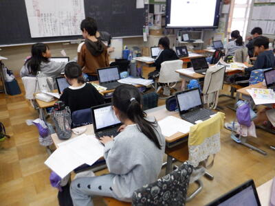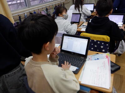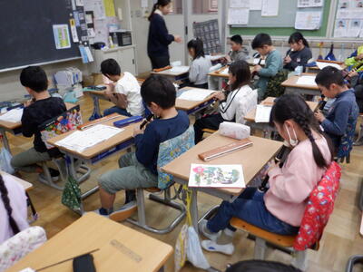 | 4年生の国語では、調べてきた伝統芸能のまとめ作業を行いました。 ノートPCを使ってまとめる子もいれば、紙に書いて整理する子もいて、それぞれ工夫しながら取り組んでいました。 少しずつ形になってきたまとめは、パンフレットとして完成に近づいています。子どもたちが調べた成果がどのように表現されるのか、出来上がりがとても楽しみです。 |