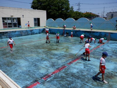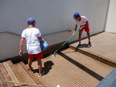 いよいよプールの季節がやってきます!その準備として、5・6年生が力を合わせてプール清掃をしました。暑い日差しの中、夢中になって磨き上げる姿がとても頼もしく、プールがきれいになるたびに達成感を感じている様子がうかがえました。 普段はなかなか経験できないプール清掃ですが、みんなで協力することで楽しさも倍増!「頑張った分、気持ちよく泳げそう!」と期待をふくらませながら、充実した時間を過ごしました。すっかりきれいになったプールで、これから思いきり水泳を楽しみましょう! |