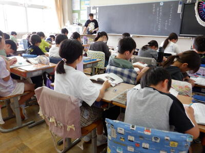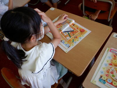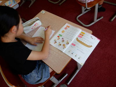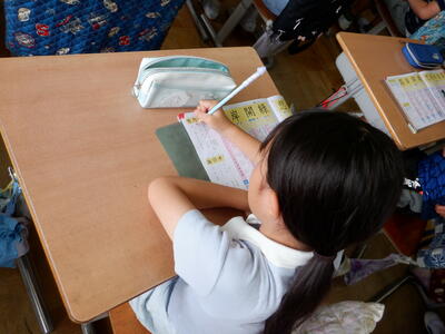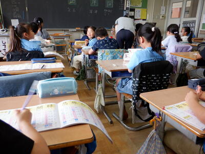 3年生は国語の授業で、漢字ドリルを使って新しい漢字の学習に取り組みました。授業中、担任の先生が教室を回りながら、一人ひとりの漢字を丁寧に確認し、その場で丸付けをしました。 |
