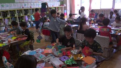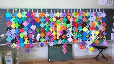 1年生の図工では、「チョッキンパで飾ろう」の学習に取り組みました。折り紙を折って、ハサミで「チョッキン」と切ると、あら不思議!思いがけない形や模様が現れます。子どもたちは指先に気をつけながら、折り方や切り方を工夫して、世界にひとつだけの作品を作り上げました。 完成した作品は教室いっぱいに飾られ、カラフルで楽しい空間に早変わり。友だちの作品をじっくり眺めながら、「ここがすごいね」「どうやって作ったの?」と会話も弾み、みんなで観賞を楽しみました。 自分の手で作ることの面白さや、工夫することの楽しさをたっぷり感じられた時間になりました。 |