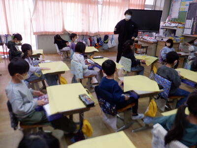 | 2年生の生活科では、大きな不織布の袋に、自分だけのデザインを描く活動を行いました。 しっかりとした布にマジックで描きはじめると、子どもたちの表情はどの子も真剣で、どこか誇らしげでもありました。 1年間の思い出を丁寧に絵にする子、好きなキャラクターをのびのびと描く子、友だちや家族の笑顔をそっと描き込む子。描かれた絵には、それぞれの子どもたちの気持ちや日々の成長がやさしくにじんでいます。 描き終えた袋を見せ合う時間には、「これ、運動会のときだよ」「家族を描いたんだ」と嬉しそうに話す声があふれ、教室があたたかい空気に包まれました。 来週、この大きな袋には1年間の荷物がたくさん入れられ、家庭へ持ち帰ります。 子どもたちが心を込めて描いた“世界にひとつだけの袋”を、ぜひご家庭でもゆっくりご覧いただき、1年間の成長を感じていただけたら嬉しいです。 |