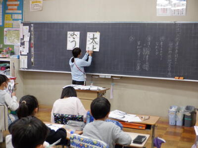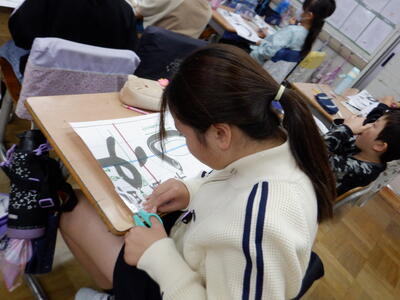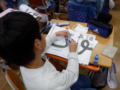 | 4年生では、書き初めの学習に向けて「お手本づくり」に取り組みました。今年の書き初めの課題は「太よう」。 子どもたちは、先生の話をよく聞きながら、文字の形やバランスを意識して丁寧にお手本を貼り合わせていました。 「太い筆で書くのが楽しみ!」という声も聞こえ、冬休み明けの本番に向けて意欲が高まっている様子です。 一人ひとりの思いが込められた力強い作品が並ぶ日が、今から待ち遠しいですね。 |