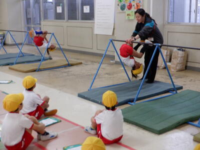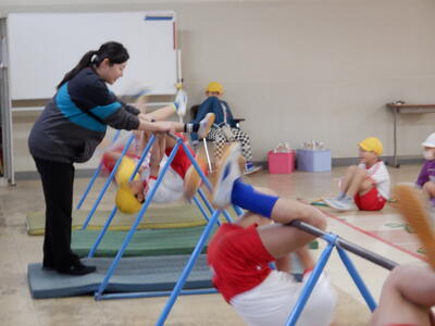クルッと半回転!笑顔いっぱいの鉄棒学習