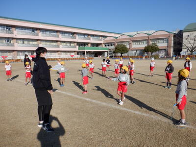 | 2年生の体育では、短縄跳びに挑戦しました。 「前跳び」や「後ろ跳び」、「二重跳び」など、少し難しい技にも果敢にチャレンジする姿が見られました。 子どもたちがピョンッピョンッと跳ぶたびに、笑顔が広がり、冬の校庭でも温かな雰囲気に包まれます。縄跳びが得意な子が前に出て見本を見せると、自然と拍手が起こり、「自分もやってみたい!」という気持ちが芽生えます。仲間の姿に刺激を受けながら、できなかったことが少しずつできるようになっていく――その瞬間に、子どもたちの大きな成長を感じました。 一人ひとりが挑戦し、仲間と励まし合いながら前へ進む姿は、まさに小さなドラマのようです。これからも、子どもたちが楽しみながら挑戦し、達成感を味わえるような学びを大切にしていきたいと思います。 |