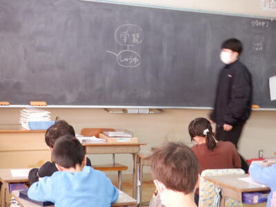 | 2年生の国語では、「見たこと、かんじたこと」の学習を通して、自分の成長を振り返る時間をもちました。今日は、「小学校に入学してから今までの、自分のせいちょう」をテーマに、プリントを使ってじっくり考えました。 担任の先生と一緒に、「どんなことが成長したかな」と話し合いながら、子どもたちは少し照れくさそうに、でも真剣に自分の姿を思い返していました。 「学習」という言葉を軸に考えていくと、入学したばかりの頃の自分が浮かんできます。 「しゅう中がむずかしかったな」「手いじりしちゃってたな」「もじもじしていたな」——そんな小さな自分を思い出しながら、素直に言葉にしていく姿がとても微笑ましく感じられました。 そして話題は、「今はこんなことができるようになったよ」という前向きな気づきへ。 友だちと顔を見合わせながら、「わかるよ」「それ、できるようになったね」と確かめ合う姿には、2年生らしい優しさと成長がしっかりとにじんでいました。 子どもたちが自分の歩みを振り返り、できるようになったことを見つけていく時間は、見守る大人の心まで温かくしてくれる、そんなひとときでした。 |