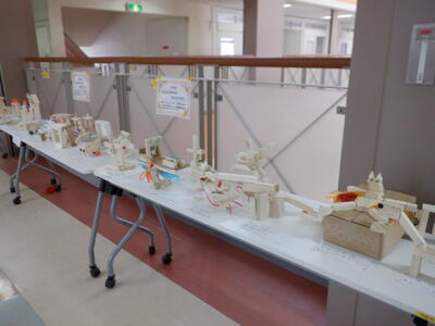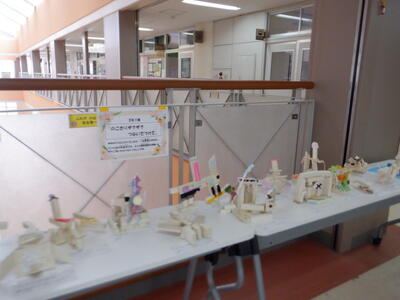 | 3年生の廊下には、図工の授業で取り組んだ「のこぎりザクザク つないでつけて」の作品が並んでいます。 一つひとつの作品には、子どもたちが時間をかけて向き合い、工夫を重ねた跡がしっかりと残っていました。形も色も発想もさまざまで、どれを見ても「その子らしさ」がやさしく伝わってきます。 廊下を歩いていると、真剣なまなざしでのこぎりを動かしていた姿や、「こうしたらもっとよくなるかな」と考えていた子どもたちの表情が思い出され、心がふっと温かくなります。 作品を通して、日々の成長や頑張りを感じられる素敵な空間になっています。 |
