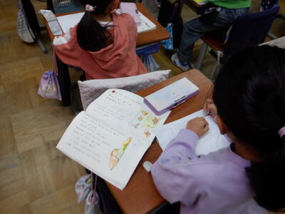 | 1年生の算数では、「ずうっと、ずっと、大すきだよ」の学習に取り組んでいます。 今日は「エルフは、どのようにかわっていったか。」をめあてに、物語の変化を感じ取りながら学習を進めました。 2月の終わりを迎えた今、子どもたちは黒板の文字をよく見て、プリントに丁寧な字で書き写す姿が見られるようになってきました。 入学した頃の小さな手つきから、こんなにも成長したのだと思うと、教室の中にも温かな気持ちが広がります。 1年間の積み重ねが、子どもたちの確かな力となって表れています。 これからも、日々の学びの中で見せてくれる成長を大切に見守っていきたいですね。 |