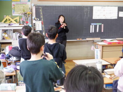 | 今朝、4年生の廊下を歩いていると、どこか懐かしく、澄んだメロディーがふっと耳に届きました。思わず足を止めて耳を澄ませると、その音は教室の中から響いています。そっと覗いてみると、担任の先生と子どもたちがリコーダーを手に、一生懸命に演奏していました。 曲は「鉄腕アトム」のテーマソング。子どもたちの息づかいがそろい、教室いっぱいに広がる優しい音色に、胸がじんわりと温かくなりました。朝の静かな時間に、こんな素敵な音楽が流れていることが、とても幸せに感じられました。 子どもたちの頑張る姿と、音楽がもたらす穏やかな空気に包まれ、今日も良い一日の始まりとなりました。 |