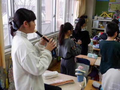 朝の教室に広がる、子どもたちの優しい音色