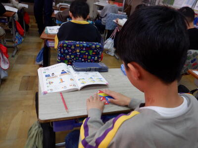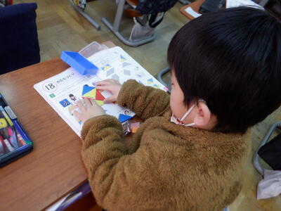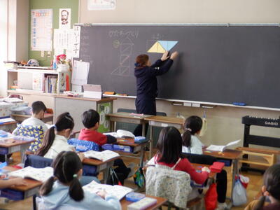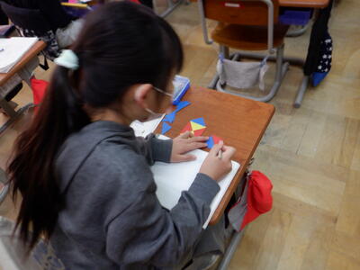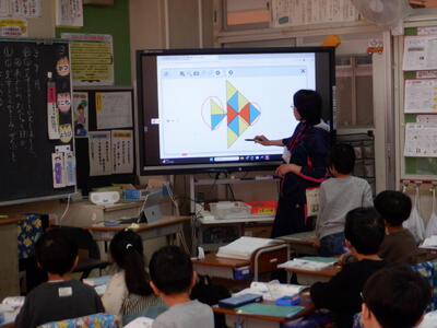 | 1年生の算数では、三角形のマグネットを使って「かたちづくり」の学習を行いました。 小さな手でマグネットを並べながら、「こんなのできたよ」と嬉しそうに見せてくれる子どもたちの姿がとても印象的でした。 「ロケット」や「家」の形は、思いつくとすぐに形にしてしまう子もいて、その発想の豊かさに驚かされます。一方で、「魚」の形は少し難しかったようで、どう組み合わせればよいか悩む姿も見られました。それでも、あきらめずに試したり、友だちと相談したりしながら、完成したときには満面の笑顔が広がりました。 三角形だけでこんなにもたくさんの形が生まれることに、子どもたちはワクワクしながら取り組んでいました。 「できた」という喜びと、「もっと作ってみたい」という意欲が自然とあふれ出る、あたたかな学びの時間となりました。 |