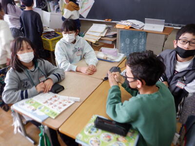 | 5年生の家庭科では、「作ってみよう かんたんなおやつ」の学習を行いました。 今日は、白玉団子の味付けについて班ごとに話し合いをしました。 「どんな味にしたらおいしいかな」 「これも食べてみたいよね」 と、子どもたちは目を輝かせながら意見を出し合い、教室にはわくわくした雰囲気が広がっていました。 そんな中、担任の先生が「やっぱり醤油味がいいな〜」と笑顔でつぶやくと、子どもたちの想像は一気にふくらみました。 「じゃあ海苔を巻いたらもっとおいしいかも」 「あんこの甘いのも食べたいな」 と、次々にアイデアが飛び出し、どの班も楽しそうに相談を進めていました。 おいしいおやつを思い浮かべながら、友達と意見を交わす時間は、子どもたちにとって特別なひとときです。 自分たちで考え、工夫しながら話し合う姿から、5年生らしい成長と頼もしさが感じられました。 教室には笑顔があふれ、心がほっと温かくなるような家庭科の授業となりました。 |