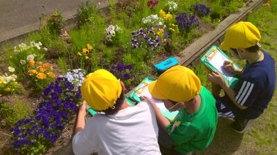 今日も、校庭で春の生き物や植物を観察している3年生に出会いました。興味をもった昆虫や花を見つけ、色や長さなどを記録しながら一生懸命学習しています。今日は、お天気もよくて、まさに観察日和ですね。先生のお話を聞く姿勢もとても立派でした☺️
