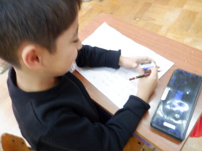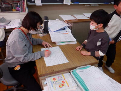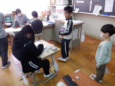 | ひばり学級では、一人ひとりの習熟度に合わせた課題に取り組みました。 担任の先生に採点してもらうために、床に貼られた白いテープの線に静かに並び、友だちの採点が終わると、そっと一つ前のテープへ進んでいきます。 順番を守りながら待つ姿はとても微笑ましく、教室には穏やかであたたかい空気が流れていました。 また、自分で採点ができる子は、計算機を使って答えを丁寧に確認していました。 「合っているかな」と真剣に画面を見つめる表情からは、自分の力で確かめようとする意欲がしっかりと感じられます。 それぞれが自分のペースで学びに向き合い、できたことを少しずつ積み重ねていく姿は、とても優しく、そして頼もしいものでした。 |