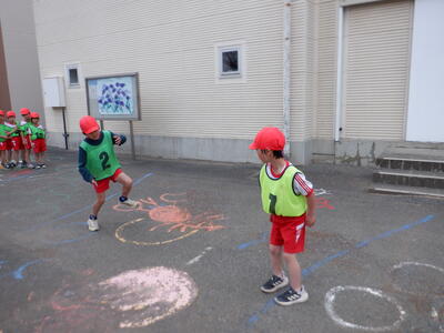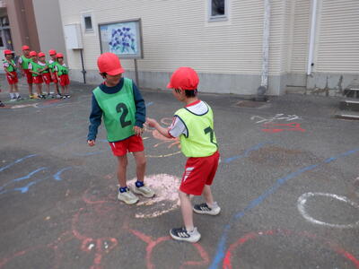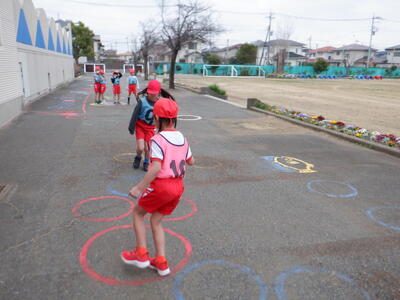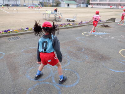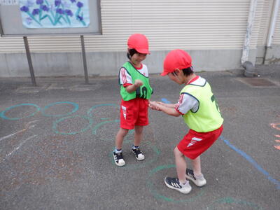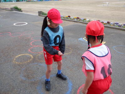 | 1年生の体育では、「ケン・ケン・パ ジャンケン」に取り組みました。 子どもたちはリズムよくケン・ケン・パをしながら前へ進み、友達とジャンケンをするたびに笑顔がはじけます。軽やかに体を動かす姿は、まさに1年生らしい元気いっぱいの様子でした。 体のバランスをとりながら跳んだり、タイミングを合わせて動いたりと、楽しみながら自然と体の使い方を学ぶことができました。これからも、体を動かす心地よさを感じられる活動を大切にしていきます。 |