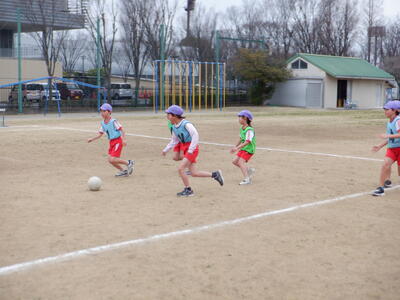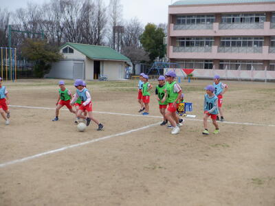 | 4年生の体育では、サッカーの学習に取り組んでいます。今日は、どのチームも気持ちをひとつにして、白熱した試合が繰り広げられていました。 グラウンドには、「パス、パス!」「〇〇さん、走って!」と仲間を思う声が元気いっぱいに響いていました。自分が活躍するだけでなく、友達の動きを見て声をかけ合う姿に、子どもたちの成長がしっかりと感じられました。 ボールを追いかける表情は真剣そのもの。仲間を信じてパスを出す子、全力で走って受け取ろうとする子、ゴールを守ろうと必死に立ち向かう子。それぞれの頑張りが重なり合って、試合はどれも見ていて心が温かくなるものでした。 友だちと力を合わせる楽しさや、最後まであきらめずに挑戦する気持ちを、今日のサッカーからたくさん学んでくれたように思います。 |