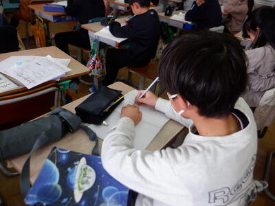 | 5年生の書写では、額縁づくりに引き続き取り組みました。 子どもたちは、一つひとつの工程をとても丁寧に進めながら、自分らしさを大切にして作業を進めています。 色の選び方や模様の工夫など、どの作品にもその子らしい個性が光り、見ているだけで心が温かくなるような仕上がりになってきました。 書写の時間に書いた文字に合う額縁を作っているため、完成したときには文字と額縁がひとつの作品としてより一層輝きそうです。 「もっときれいにしたい」「ここを工夫したい」と、作品に向き合う子どもたちの姿からは、成長と真剣さがしっかりと伝わってきます。 どんな素敵な作品がそろうのか、完成の日が今からとても楽しみです。 |