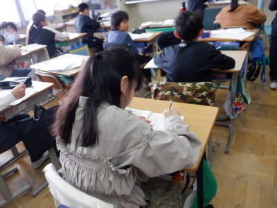 | 2年生の書写では、「一年間の思い出をふりかえろう」という学習に取り組みました。これまでに学んだことを思い出しながら、短い文章に自分の一年をぎゅっと込めて書く活動です。 「どんなことを書こうかな」「うーん、思い出せないな」と悩む姿もありましたが、どの子も鉛筆を握りしめ、一生懸命に言葉を探していました。その姿はとても真剣で、見ているこちらの心まで温かくなりました。 子どもたちが思い出を振り返る表情には、2年生として過ごしてきた日々の積み重ねがにじんでいました。「もうすぐ2年生も終わるんだな」と、成長の大きさをしみじみ感じる時間でもありました。 これから迎える3年生での新しい学びも、きっと子どもたちの力になっていくことでしょう。 |